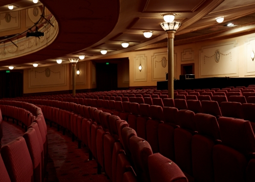 The project involved shifting traditional audience / performer / theatre spatial relationships by inverting conventional seating arrangements. An audience of 100 people were seated behind the stage, mirroring the empty auditorium, with two grand pianos interlocked on stage left. Enhanced by choreographed lighting, the attention of the audience was dually focused on the empty auditorium and the two pianists (Elizabeth Drake and Vanessa Tomlinson) performing Steve Reich’s ‘Piano Phase’. The conspicuous absence within the auditorium aims to provoke a transverse condition in which the audience becomes aware of their own position in relation to the performers, the audience members and the built environment.